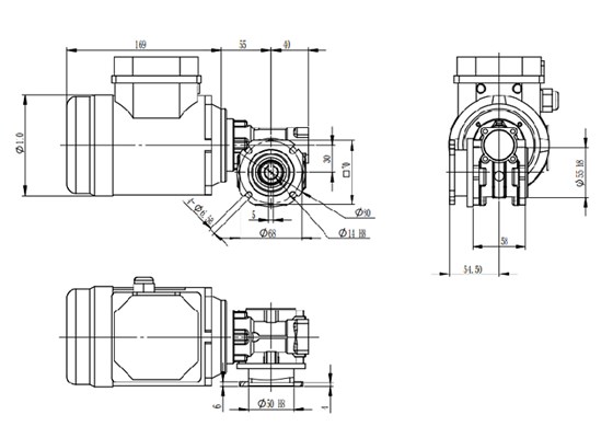 艾思捷SJMFV030+0.09KW蝸輪減速機外形圖紙如下: