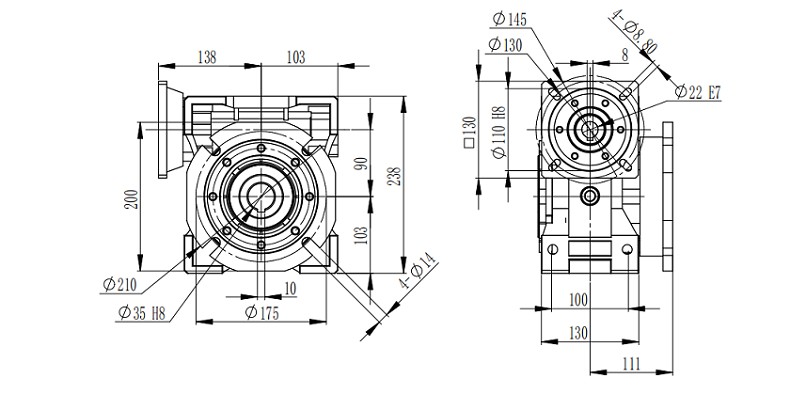 艾思捷SJMRV090-80比蝸輪減速機安裝尺寸圖紙